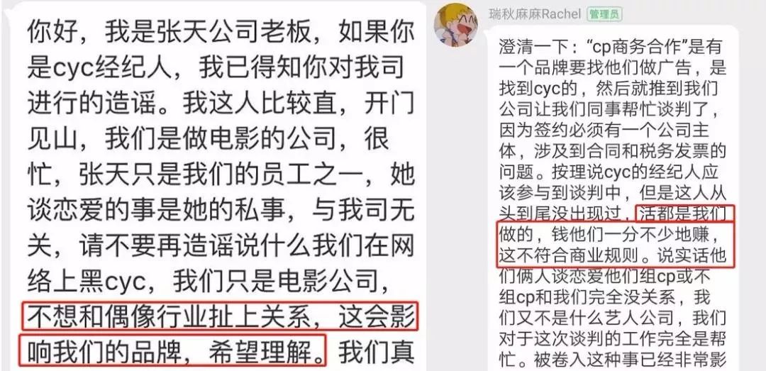 陈奕辰的经纪人就像在粉丝群里一样狂,直接正面回应刚上了张天。