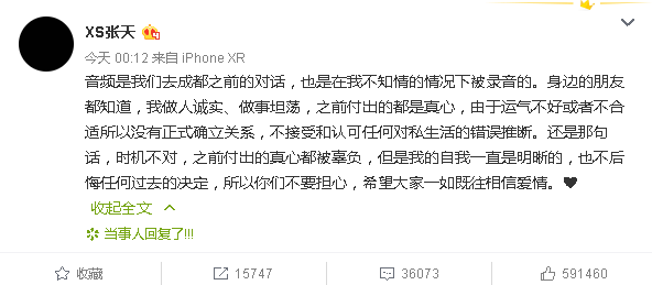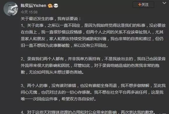 大概内容就是:分手事实,录音不是我放的,不关经纪人的事,大家各自安好。
