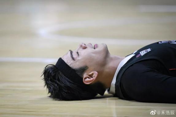 ▲体力耗尽后,直接躺在了球场上|图片来源:禾浩辰微博