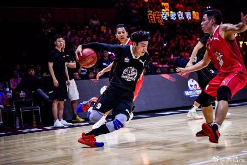 这是篮球真人秀《超级企鹅联盟》中的场景,虽说参加的其实是个综艺,禾浩辰还是把它当做真正的篮球比赛,在赛场上亦攻亦防,为取得胜利而拼尽全力。