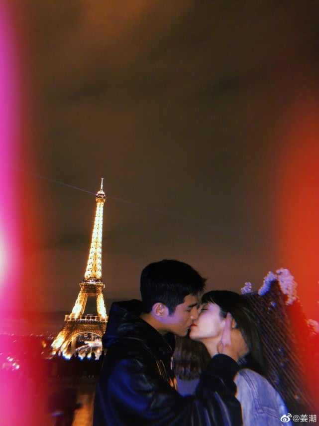 原标题:姜潮晒与麦迪娜接吻照,狗粮撒到埃菲尔铁塔,整个画面像童话