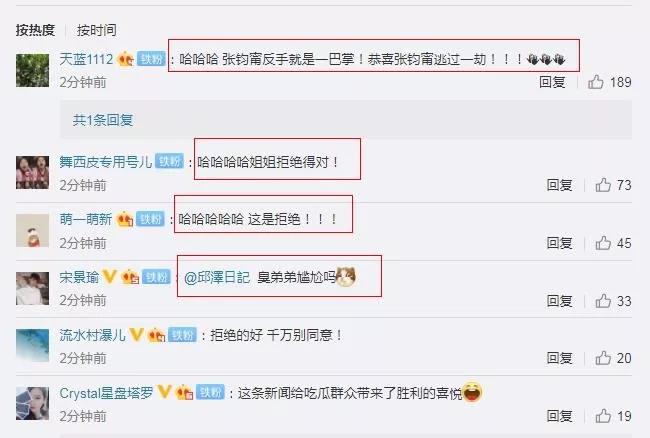 不少人纷纷留言:“看到张钧甯没有答应,我就放心了”。