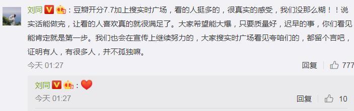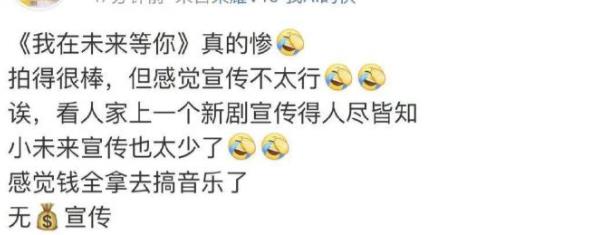 第二,越来越多的网友开始指出剧方“无力宣发”的短板。作为自制网播剧,众主创虽然卖力打call,但《小未来》的“宣发”实在是惨不忍睹。监制刘同似乎也是有难言之隐,在社交主页上仅仅是为《小未来》开了一波小额抽奖,在评论区刘同直言:“没钱买热搜”