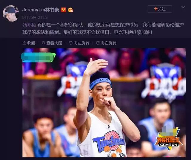在节目里和邓伦搭档的林书豪也发博安慰,认为邓伦的初衷只是为了保护球员,理解他会有这样的情绪。