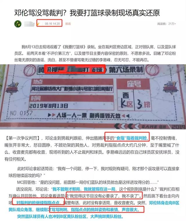 其实早在8月13号录制当天,就有现场观众指出邓伦有对裁判爆粗口,不止如此,邓伦队的球员作势冲向粉丝,还好最后被拉住,只不过因为涉及另一位嘉宾李易峰,看到的人自然将这次录制冲突归结为粉圈恩怨,并没有过多注意。