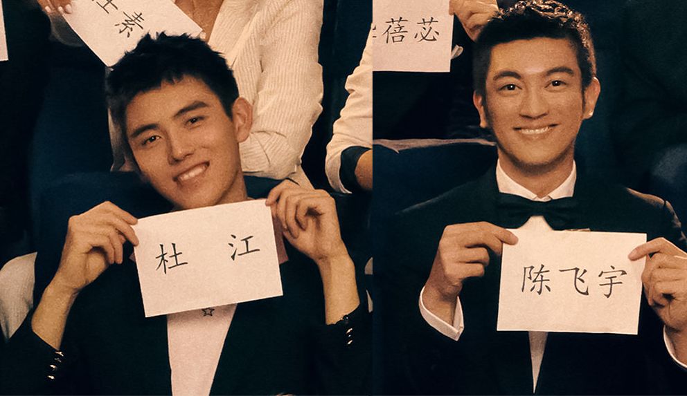 陈飞宇和杜江手中的姓名牌互换了,或许也是为了增加一些趣味。
