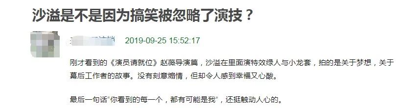 很多网友都从这三个短片中,感受到了沙溢的演技,原来他不仅可以搞笑,还能演出这么触动人心的作品,有人说:沙溢是因为搞笑而被忽略了演技,是被综艺而耽误的戏骨啊。