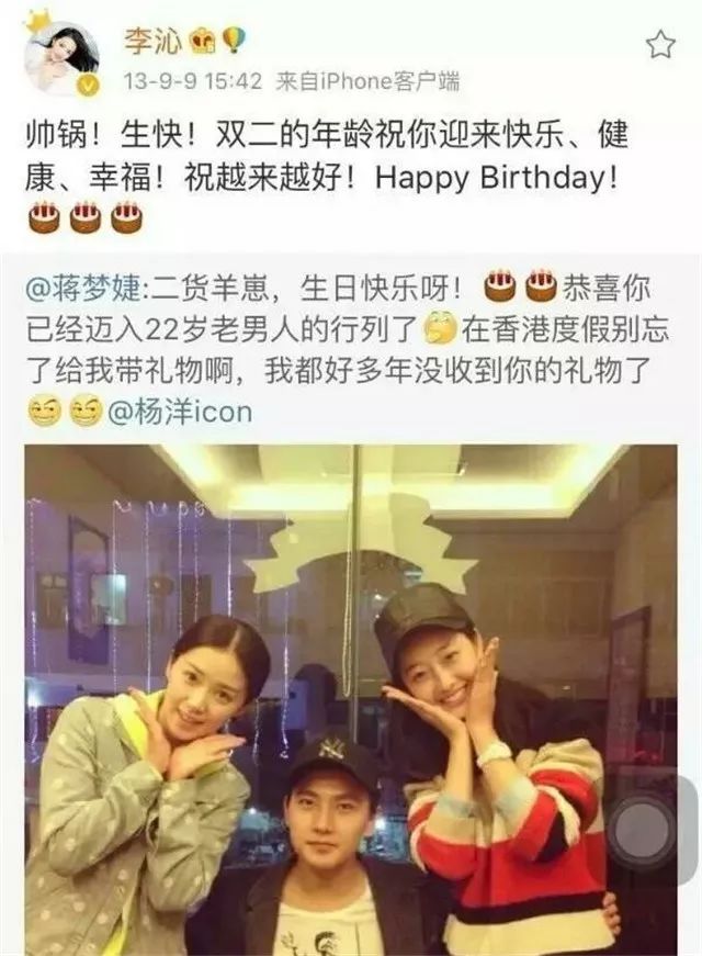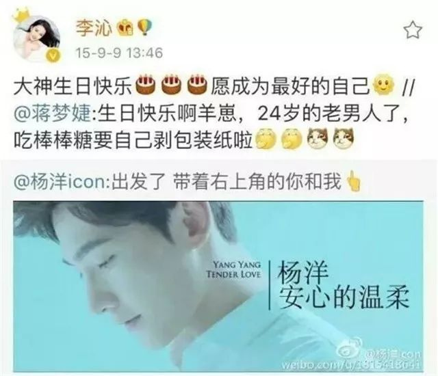 但是从两人有了微博之后,李沁对杨洋的生日祝福,从来都没有断过,一年接着一年,即便是两人分道扬镳已经从情人变成了朋友,祝福也还是没有间断过。