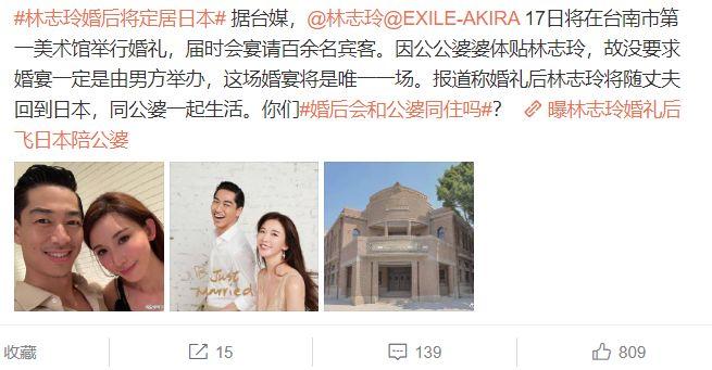 原标题:台媒曝公婆非常喜欢林志玲,结婚之后将和丈夫在日本