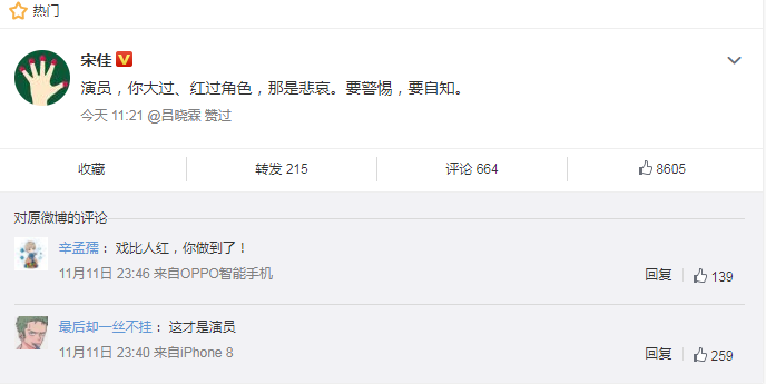 不得不说,宋佳也是杠杠的演技担当,不然也不能在微博上敲下这样的文字。