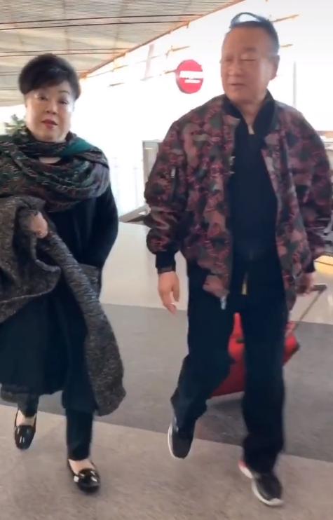 蒋大为的老婆张佩君打扮却十分贵气,头顶精致的妆容和发型,身上披着一件流苏披风,脚踩平底皮鞋,身材略显富态。两人面对镜头还有些不好意思,似乎没想到自己会被认出来。