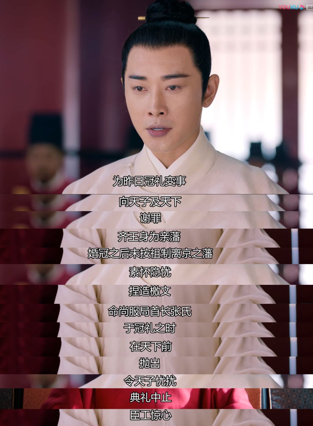 开篇便是卢尚书谏议天子为太子冠礼,果然是老戏骨,台词功底太强了。