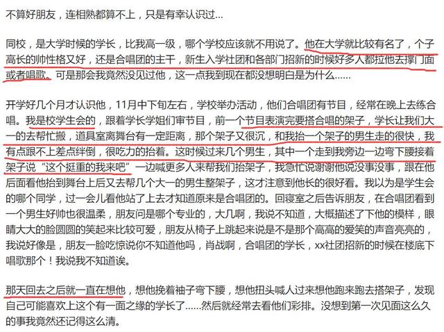 肖战爆红后,也有一个曾经暗恋过他的女生在“作为肖战现实生活中的好友是什么样的体验”的贴子下回复,说出了当年暗恋他的故事,这位女生爆料他在学校的时候就很有名,不仅长得帅性格也好,还曾是校合唱团的主干。