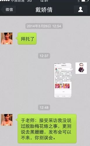 另外还有一个戴娇倩,鲜有的跟于正公开撕破脸的。因为《宫锁连城》中的咖位问题,跟于正在微博上撕的不可开交,后来《宫锁连城》被指抄袭琼瑶的《梅花烙》,戴娇倩虽然是宫里面的演员,但还是光明正大的开撕了抄袭之事。